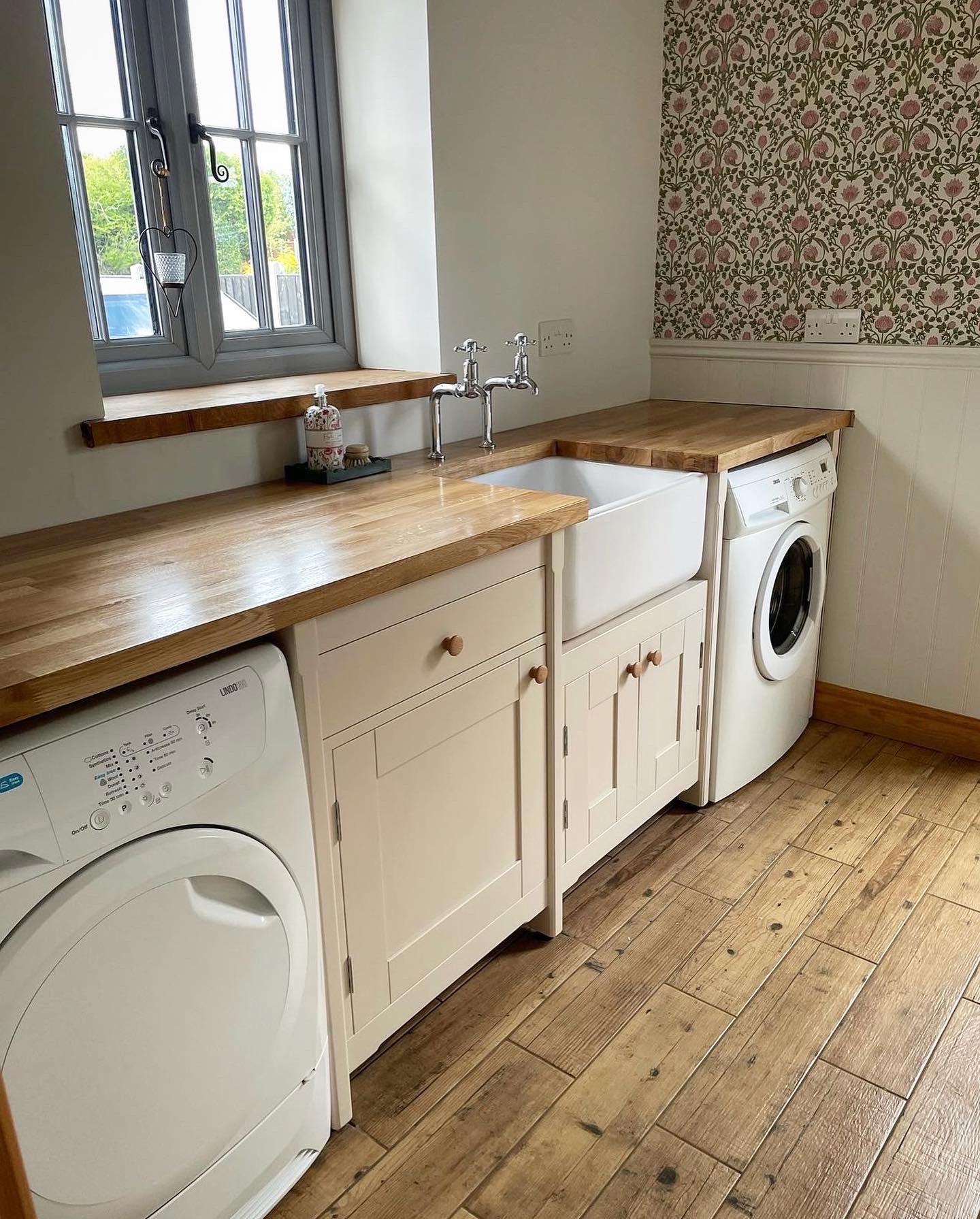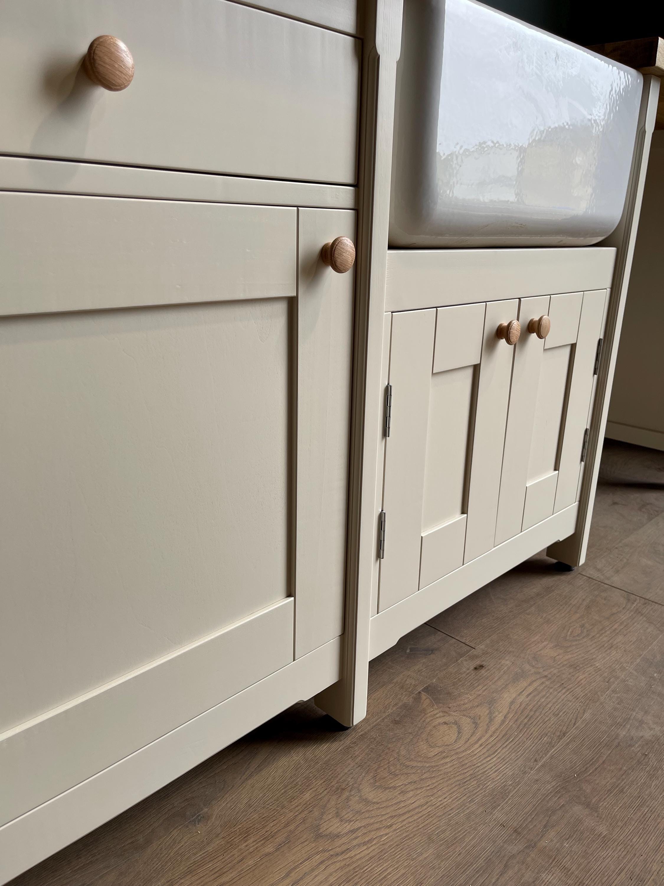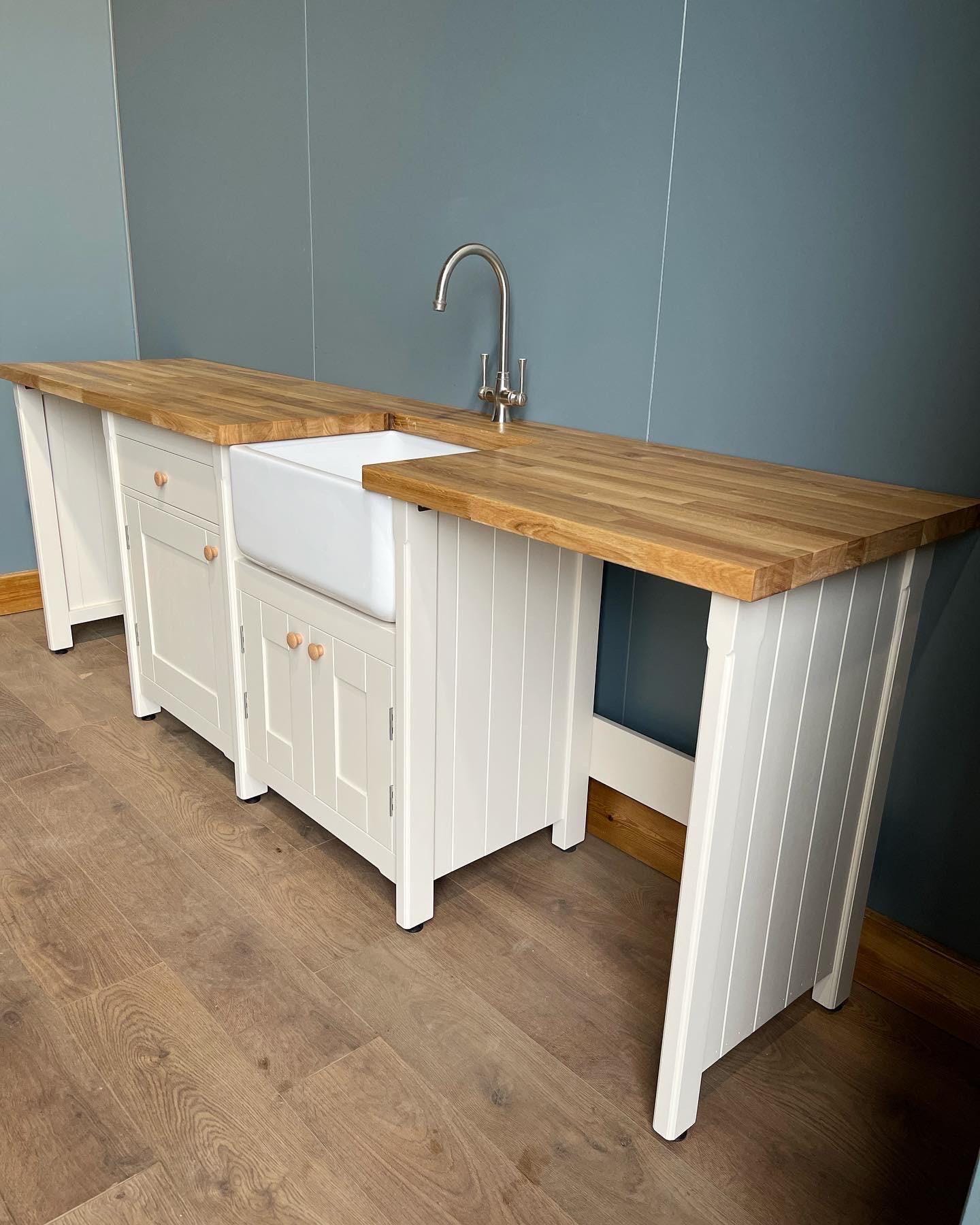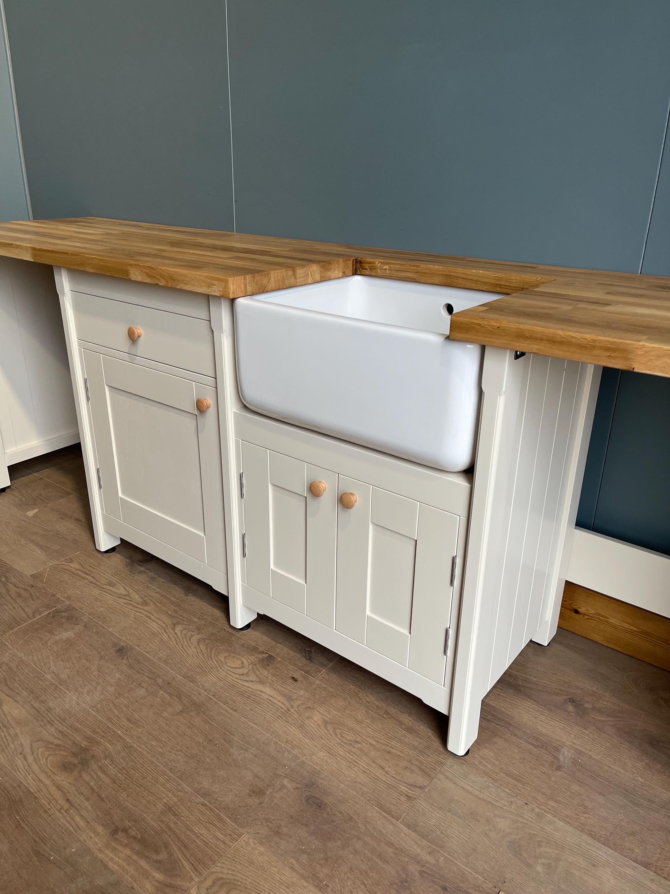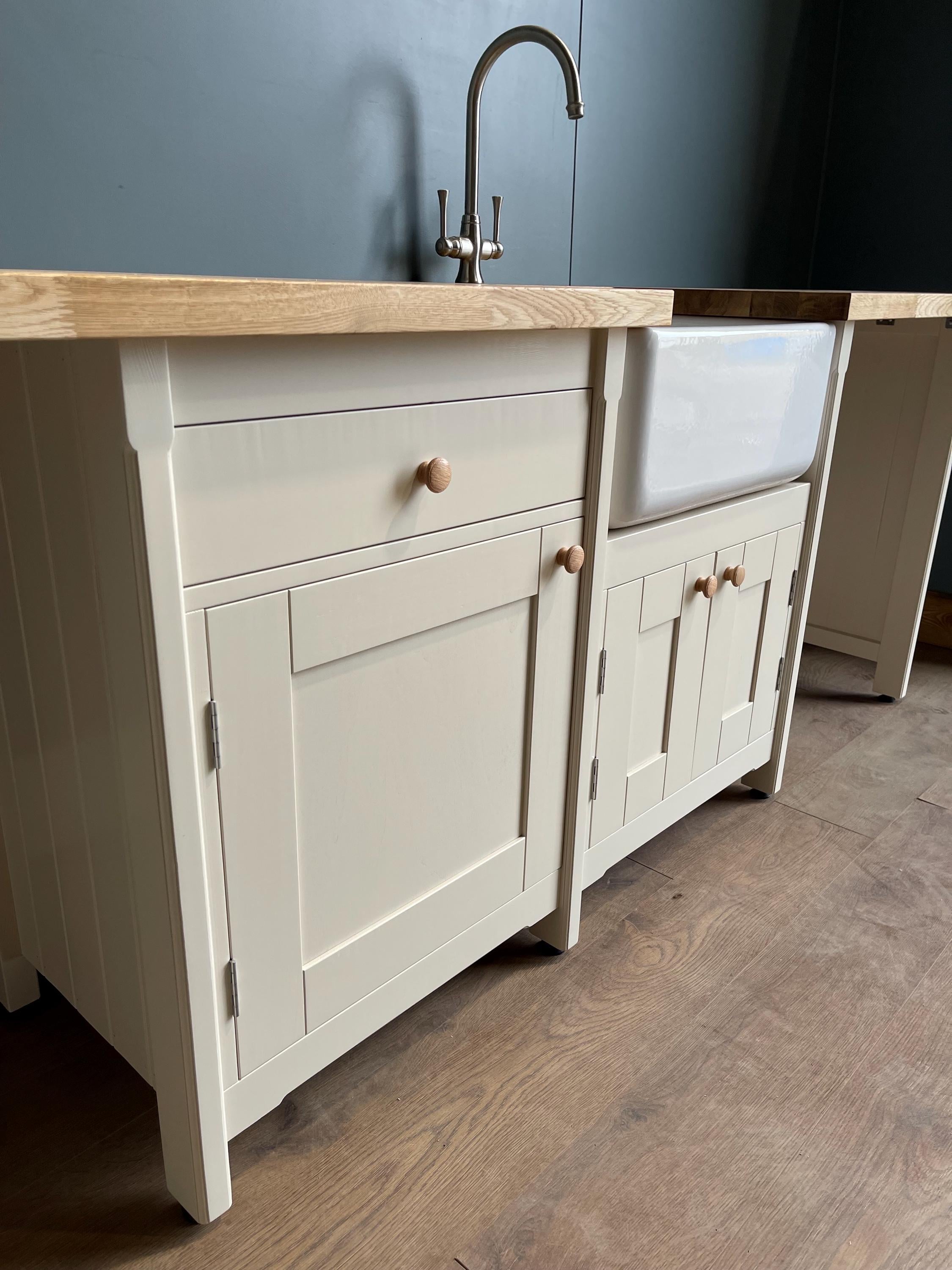 Base units are spray finished in a durable satin water based paint & worktop is finished with a durable food safe oil
